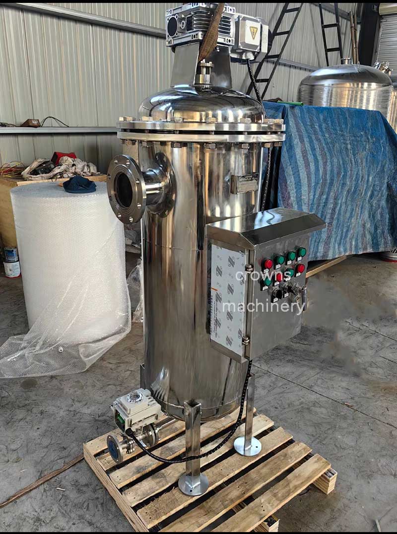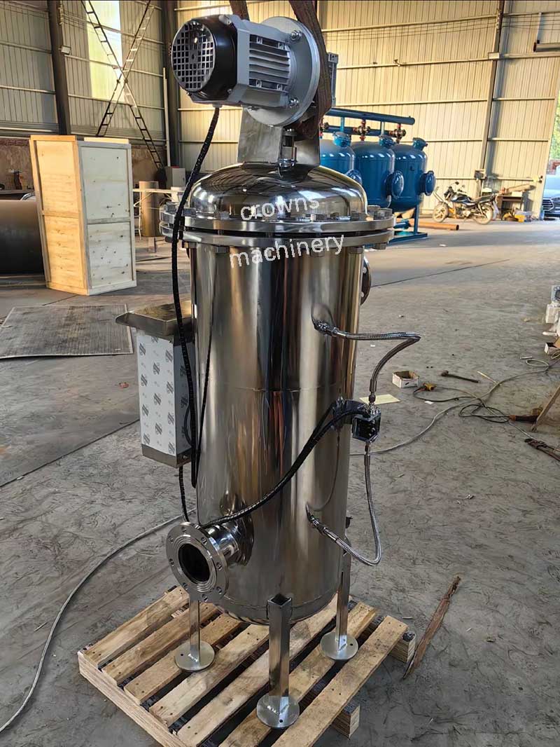 Automatic self-cleaning filter is a vertical electric brush or scraper filter, with optional shell materials of